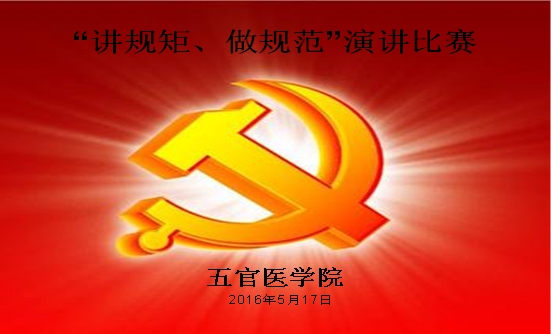 (通讯员涂芳)为增加我校教职工遵规守矩及工作规范的意识,切实加强规范管理和作风建设,五官医学院党总支于5月17日晚7:00在教2-304开展“讲规矩 做规范”演讲比赛,暨湖北科技学院第十七个党风廉政建设宣传教育月活动。