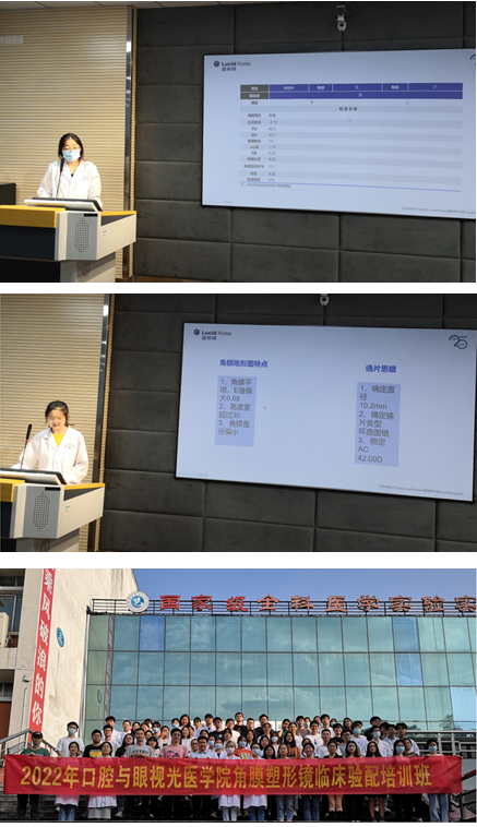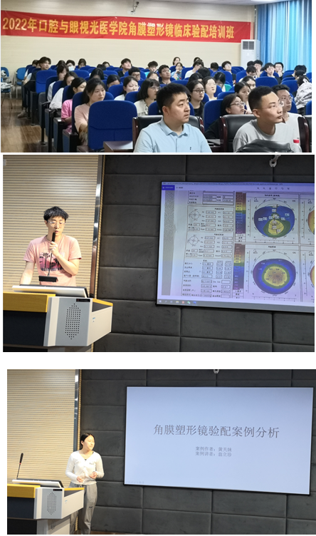 培训班邀请了有着丰富临床验配经验的优视佳集团医学事务总监李兆春,露晰得中国产品经理李小路、湖北省技术顾问熊文毅、江苏省技术顾问许裕文四位老师共同承担授课内容,我校18级五年制眼视光医学专业73名同学参加此次培训。课程设置包括如何看懂角膜地形图;硬性角膜接触镜初阶知识;RGP的设计及标准验配;角膜塑形镜的设计及标准验配;角膜塑形镜配适常见问题及参数调整等,老师们深入讲解,互动答疑,对同学们进行了系统性的培训。在学习了角膜塑形镜的验配技巧后,同学们分组实操露晰得角膜塑形镜验配,从选镜片到看染色,再到分析讨论试戴检查结果,多角度学习角膜塑形镜验配,进一步梳理和巩固了知识体系,大家都纷纷表示收获颇丰,期待再次相聚。