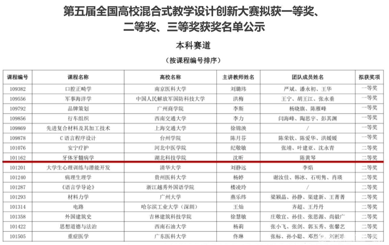 (通讯员:陈黄琴) 近日获悉,我校yl8cc永利官网口腔医学专业沈昕、陈黄琴团队在2023年第五届全国高校混合式教学设计创新大赛中斩获二等奖。