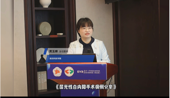 会上,武汉大学附属爱尔眼科医院、华中科技大学同济医学院附属协和医院、湖北科技学院、咸宁市中心医院、通城县人民医院的专家进行了学术讲座和病例分享。我校yl8cc永利官网眼视光教研室黄玉婵主任在大会上做了«屈光性白内障手术病例分享»的交流发言,分享了在屈光性白内障患者选择及完美屈光白内障手术关键方面的临床经验。