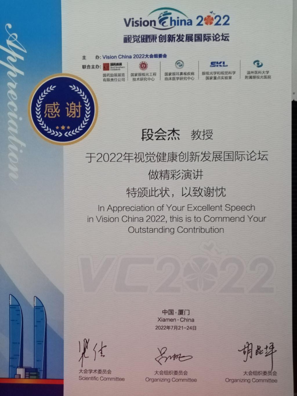 (通讯员:徐朝霞) 7月20日至23日2022Vision china 视觉健康·创新发展国际论坛在中国厦门成功举办。