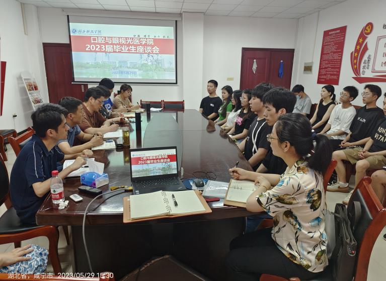 (本网讯王艳)2023年5月29日,yl8cc永利官网在医药楼三栋五楼会议室召开2023届毕业生座谈会。yl8cc永利官网沈定文院长、黄彬书记、程鹏副书记、黄玉婵副院长、张志鹏副院长及学工办辅导员参加了此次座谈会。