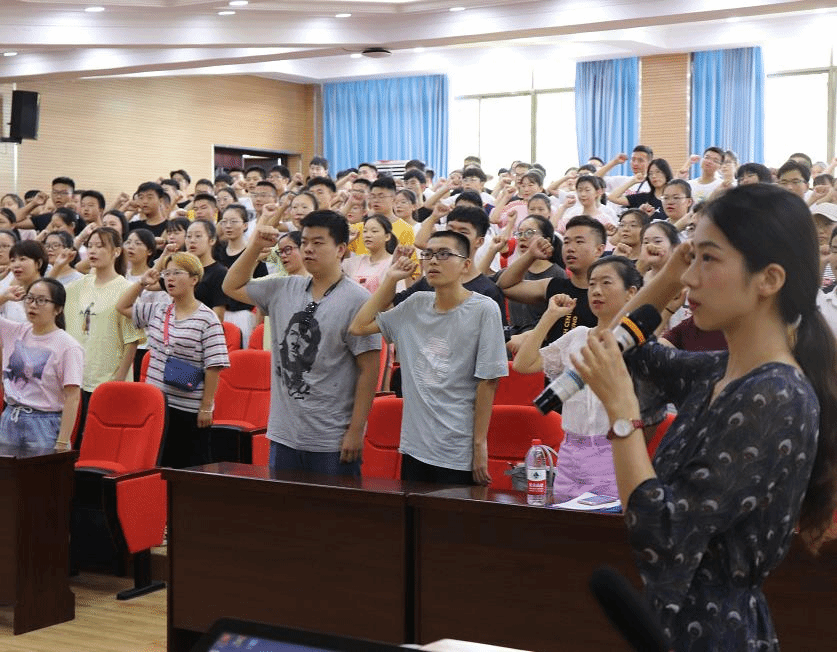 随后,沈昕老师带领全体新生宣读医学生誓言;2019级眼视光医学专业余慧婷同学代表新生发言;2016级口腔医学专业石文锐同学代表发言;冯蕊老师代表教师讲话。